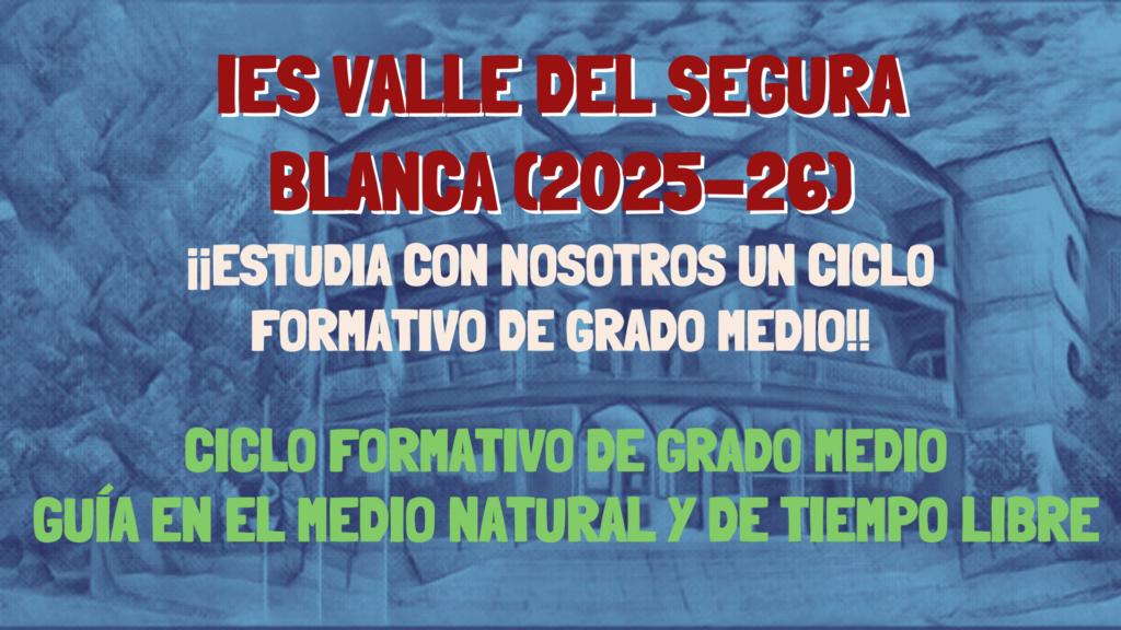 En el IES Valle del Segura se puede cursar el Ciclo Formativo de Grado Medio de Guía en el Medio Natural y de Tiempo Libre.