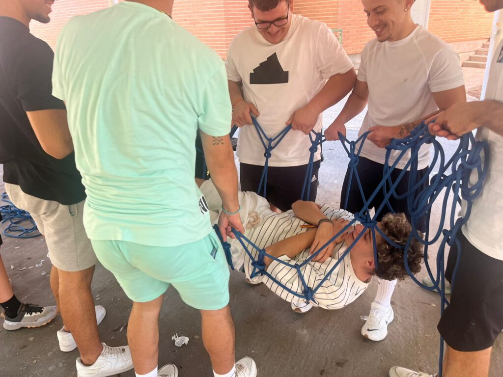 Los alumnos de 2º han aprendido a elaborar una “camilla de fortuna” para trasladar heridos en el módulo de Maniobras con Cuerdas.