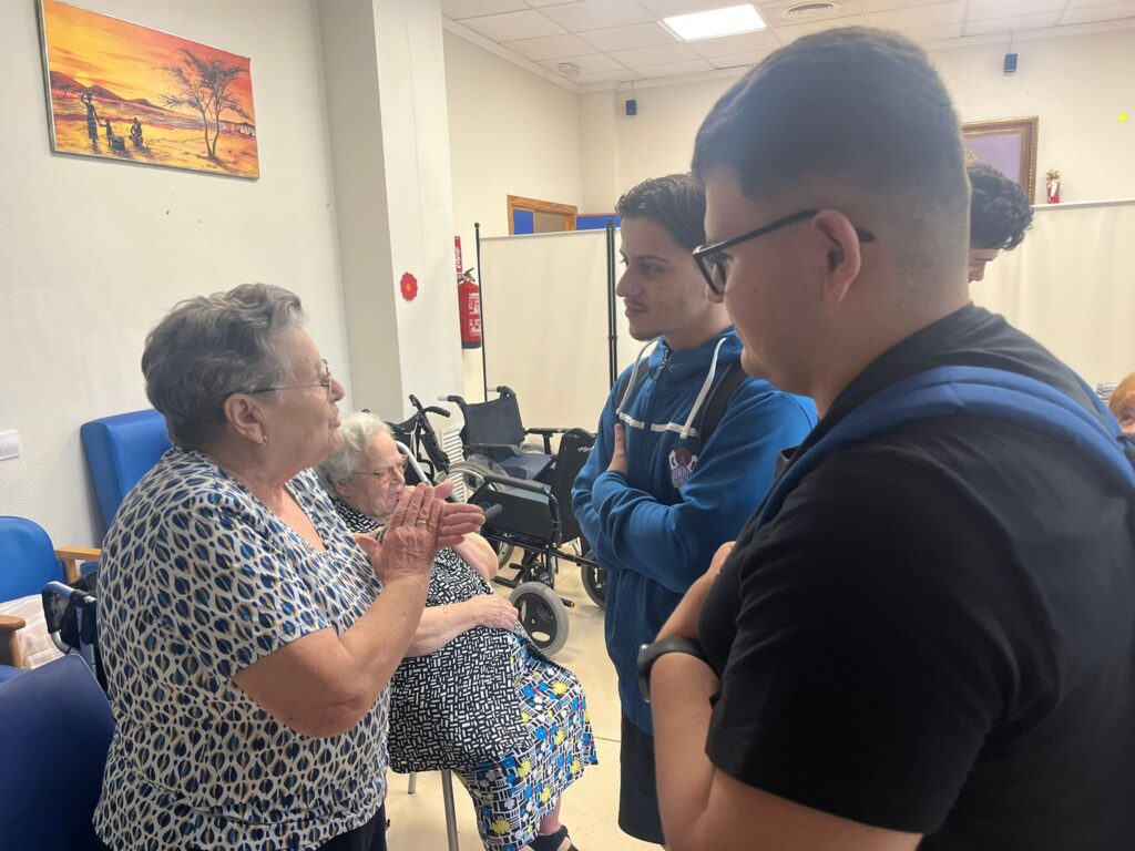 El alumnado de 2º CFGM de Guía en el Medio Natural y de Tiempo Libre, acompañado de sus profesores, Rocío Luna y David Cerdá, han estado visitando la Residencia y Centro de día de Blanca para conocer a los residentes y poder realizar diferentes actividades de ocio con ellos durante la próxima semana que se celebrará el Día Internacional de las Personas Mayores.