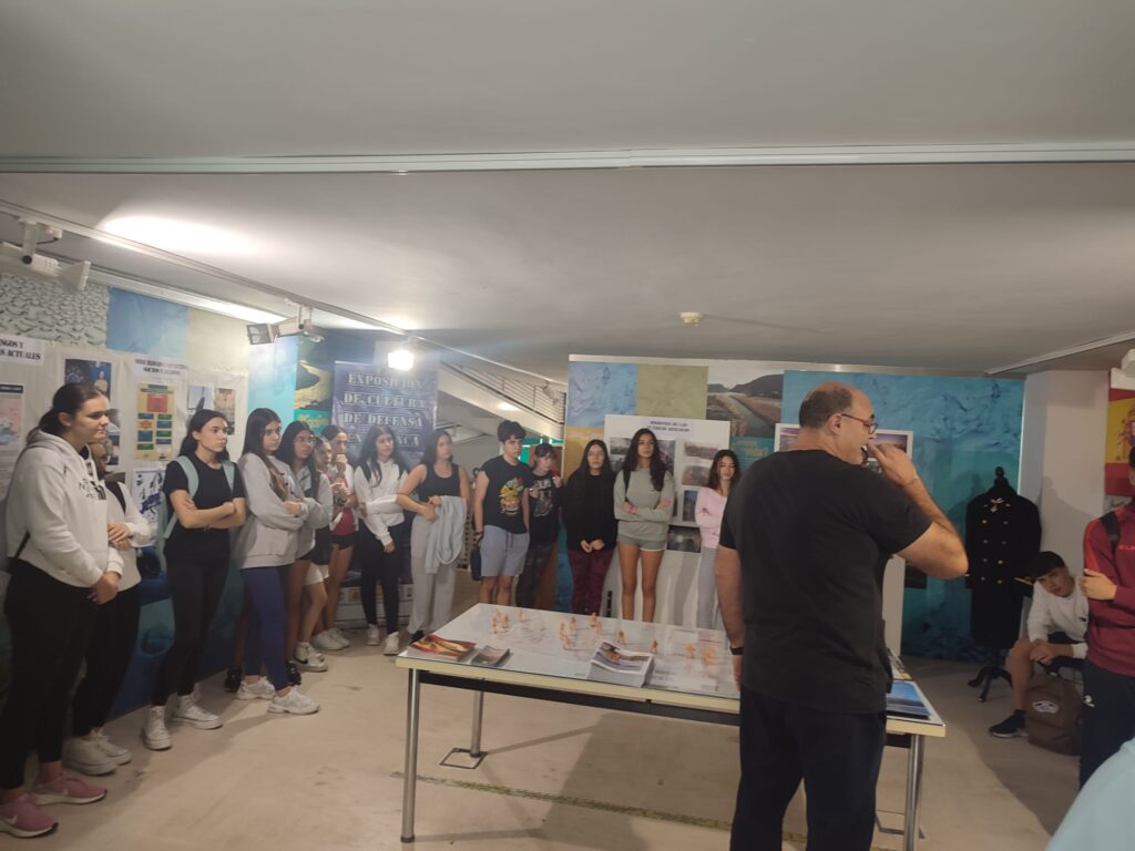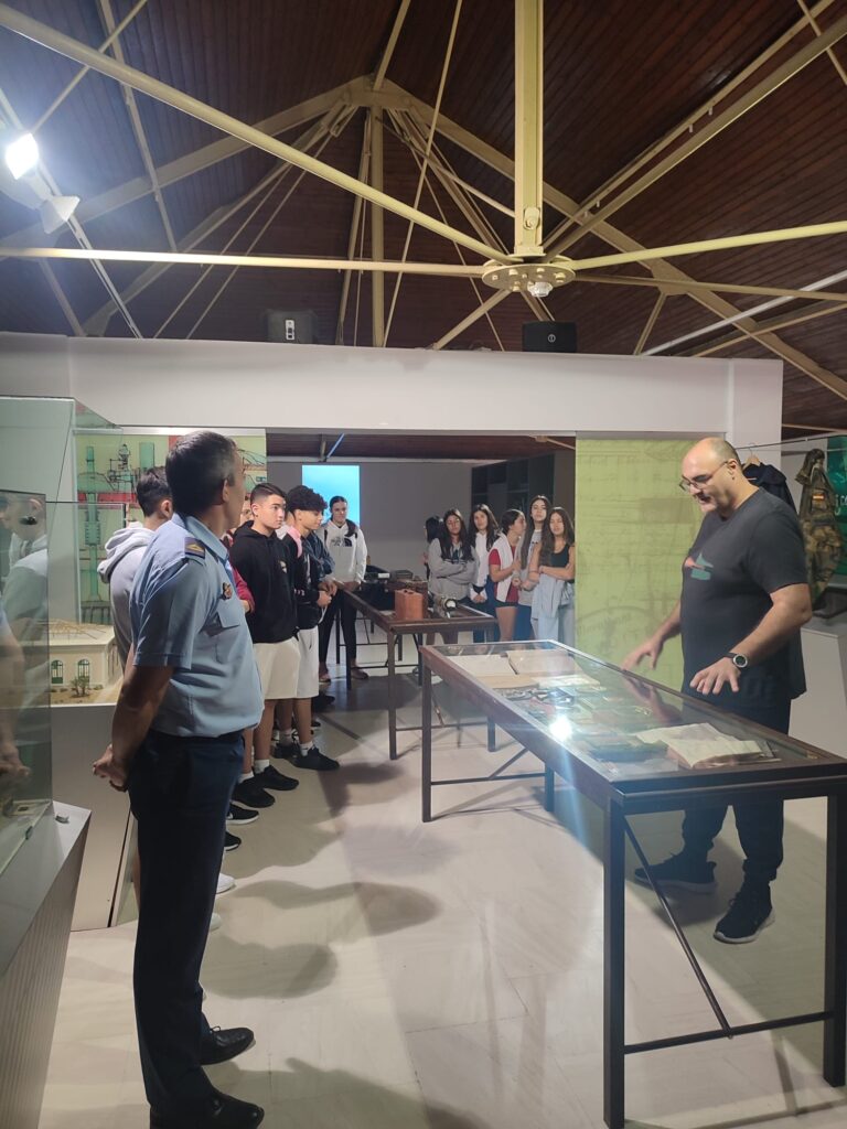 Gracias a la Asociación E-cultura y Ocio de Blanca con la que colaboramos asiduamente, hemos podido visitar hoy la I Exposición de Cultura de la Defensa en Blanca, en el Museo de la Luz y el Agua. En la exposición han podido contemplar material etnográfico de carácter militar del siglo pasado y alguno aún más antiguo y se les ha explicado todo el valioso elenco de elementos de carácter militar e histórico recopilado. Agradecemos la oportunidad que se nos ha ofrecido está mañana y que tendrá su continuidad mañana con la visita del resto de grupos de 4° de ESO Y 1° de Bachillerato que no han podido asistir hoy.