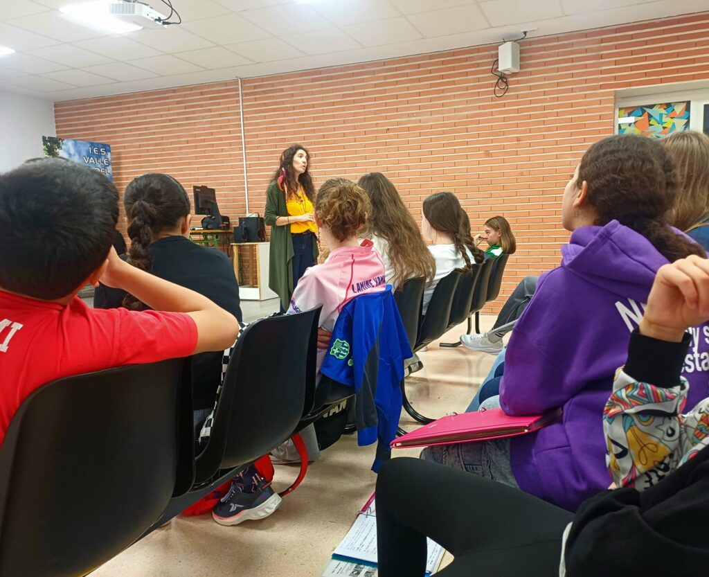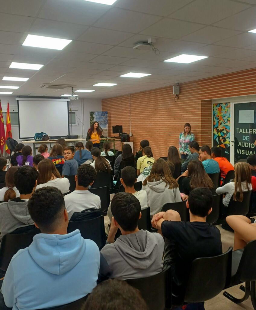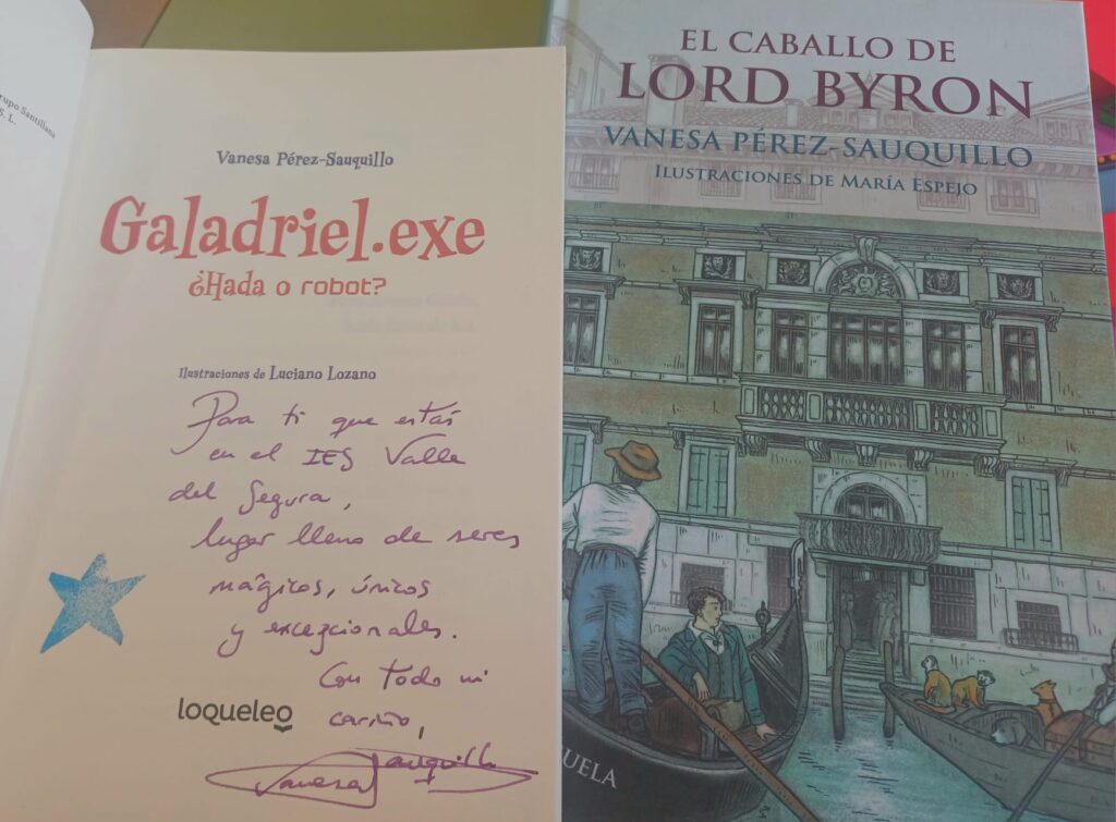 Hoy nos ha visitado la poeta y escritora de literatura infantil y juvenil, galardonada este año con el premio de poesía Jovellanos, Vanesa Pérez-Sauquillo. La poetisa madrileña ha estado con ersando con los alumnos de 2° de ESO que han estado interviniendo y participando de forma muy activa. Como regalo nos ha dejado firmados dos ejemplares de su última obra que pasarán a firmar parte de nuestra Biblioteca escolar, ocupando en ella un lugar preeminente.